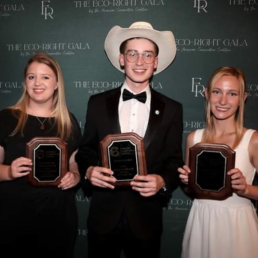 I received national recognition for my leadership and program development. I was selected as the Top Ambassador of 2023 at the American Conservation Coalition’s annual Eco Rights Gala in Salt Lake City, Utah. Over my year working with the ACC, I was able to reach 20 students in Columbia, Missouri, to engage in climate policy initiatives, gain support from 500 students through petitioning, and educate 20,000 attendees of regional climate forums.