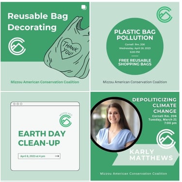 In Columbia, Missouri, I founded and scaled a campus chapter to a 20-member team. Throughout the year, I hosted multiple events, including policy writing sessions, climate communication seminars with staffers in Washington DC, hikes, and trash clean-ups.