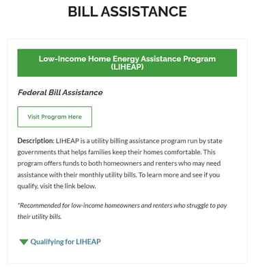 In order to construct this tool, I first reviewed and categorized the available energy resources. I grouped them by government level (federal, state, utility, and local/municipal) and then by category (bill assistance or energy efficiency).