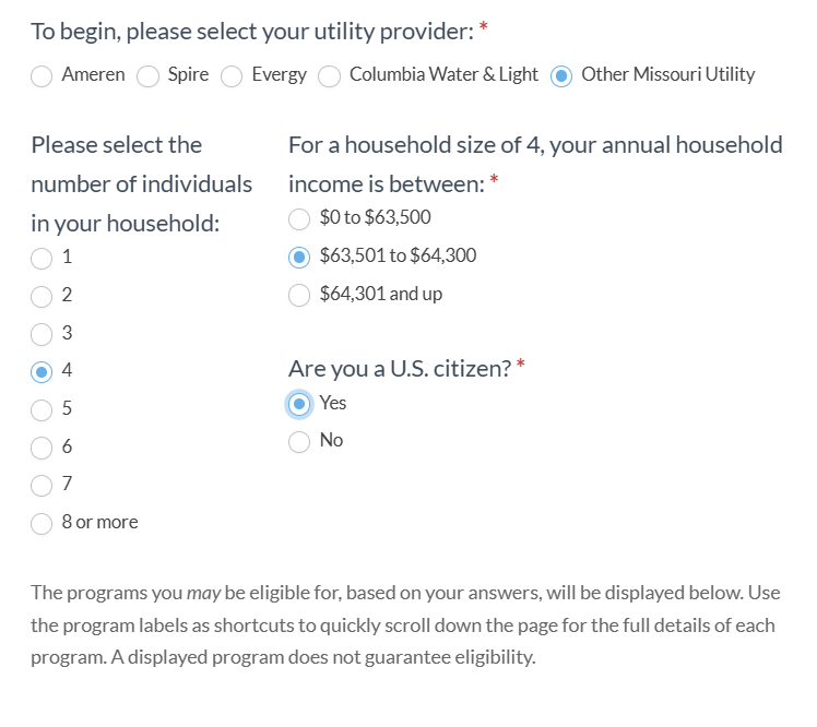 Since narrowing eligibility down to exact programs required far too many questions for residents, I reviewed eligibility requirements and found that most programs relied on three things: