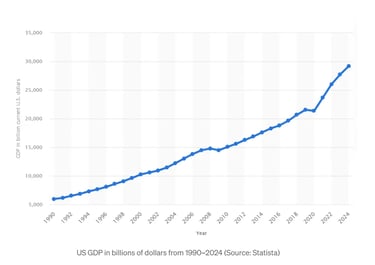 GDP has continued to increase in the United States, but is primarily concentrated in the wealthy elite of California and New York City. Just the state of California is the fourth-wealthiest economy in the world. In 2021, Bloomberg stated that 32% of the United States' GDP was composed of just 31 counties.